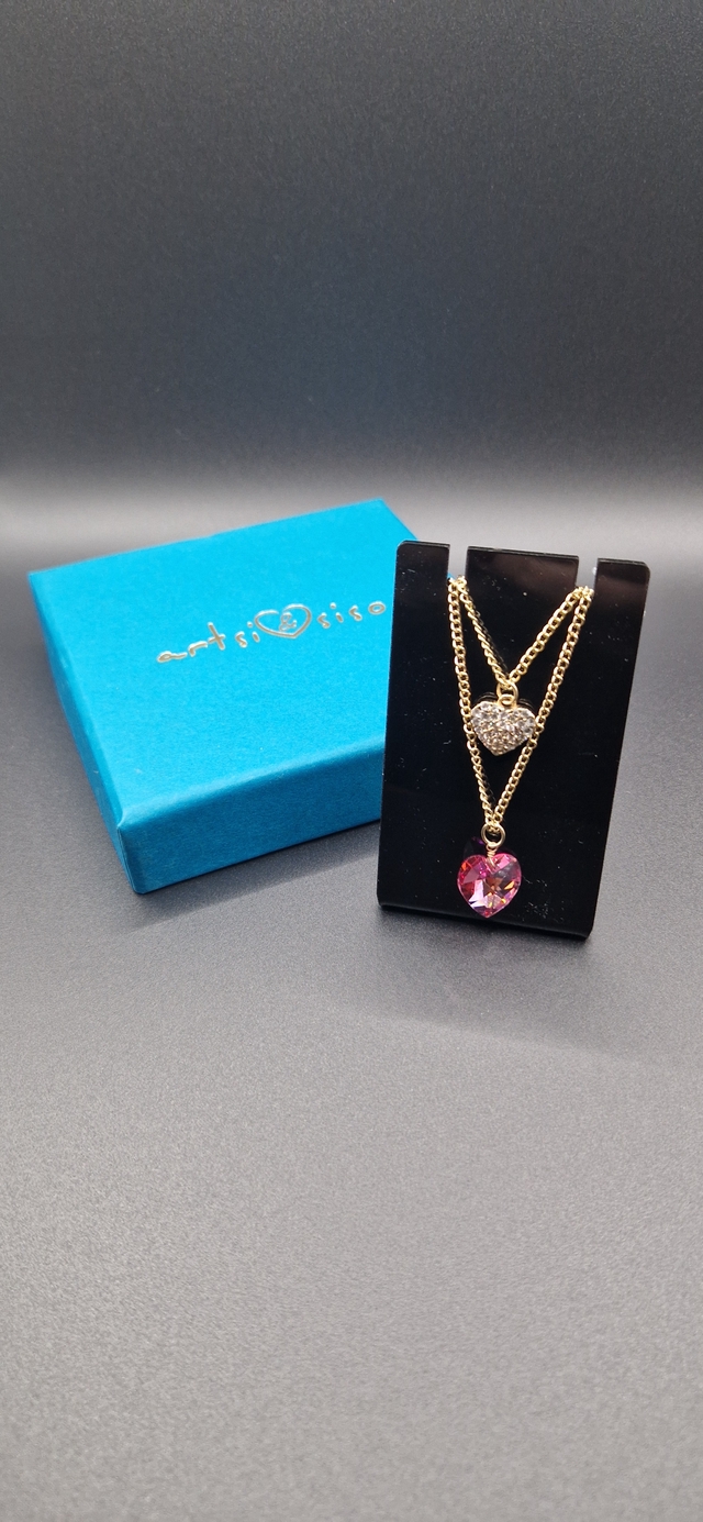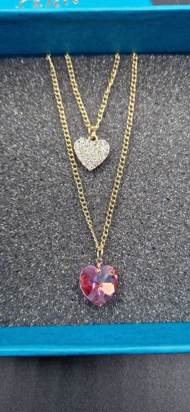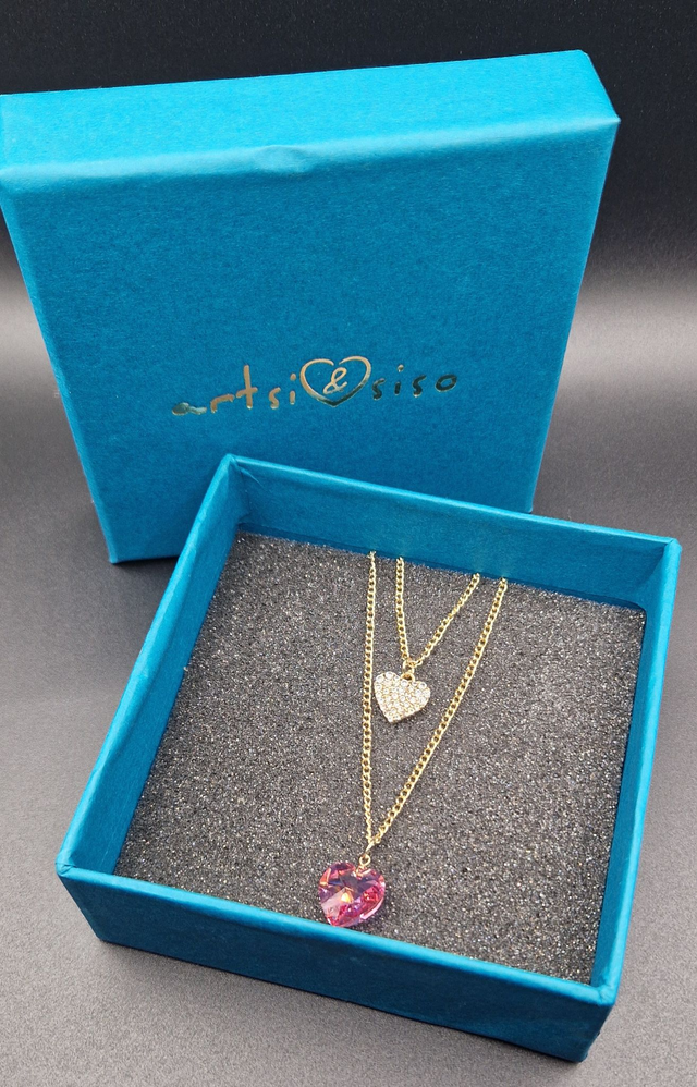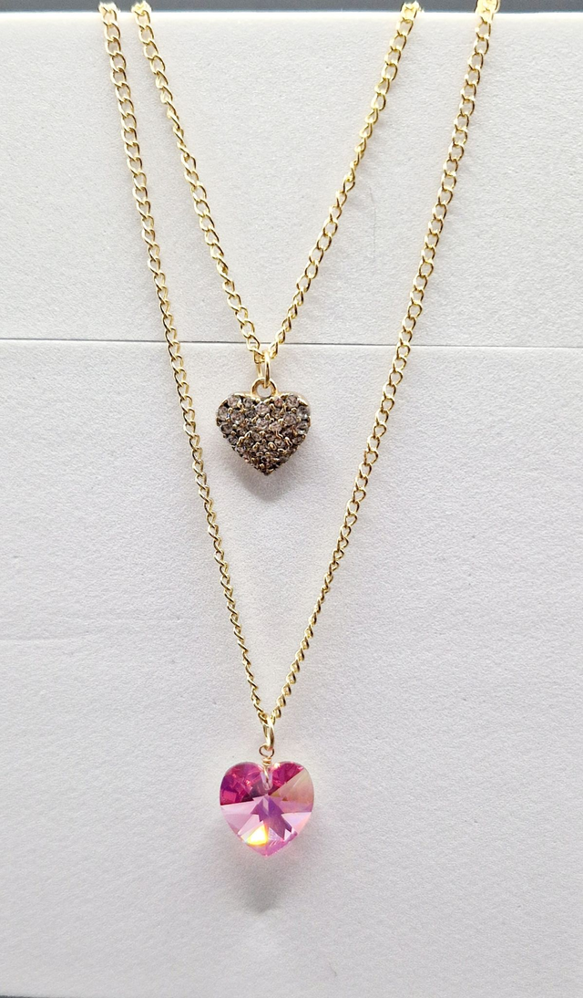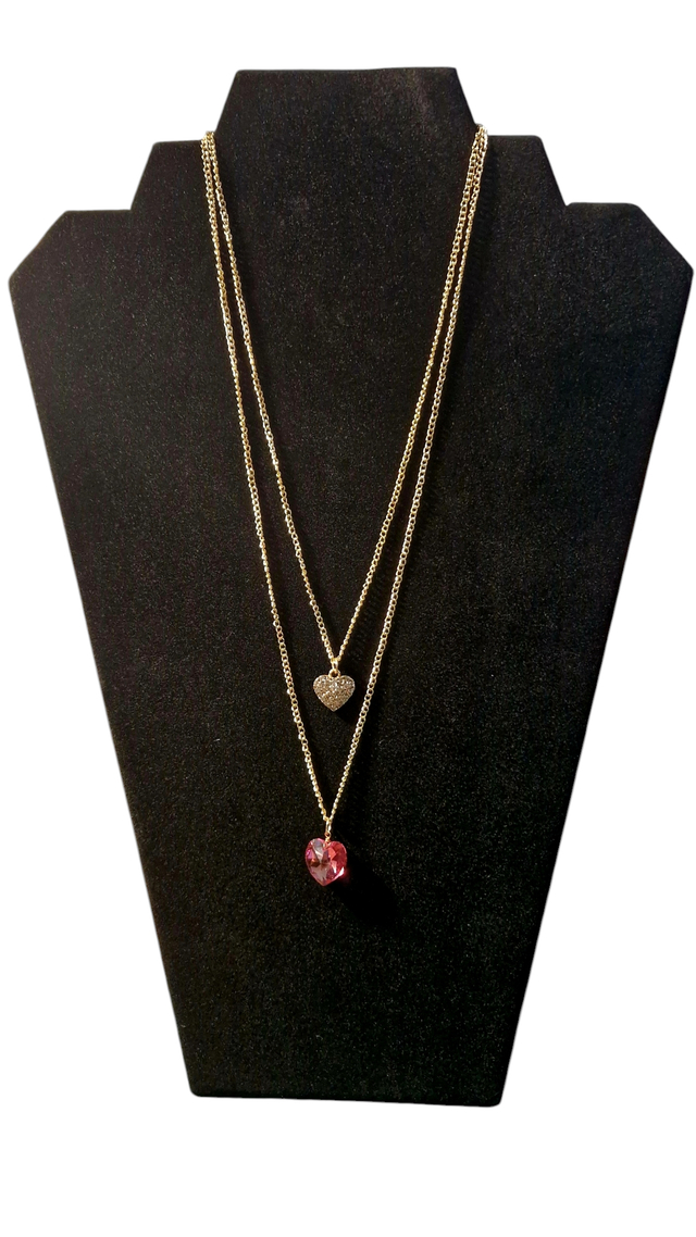 💕An exquisite double necklace featuring a pink Swarovski stone and secondary smaller metal heart